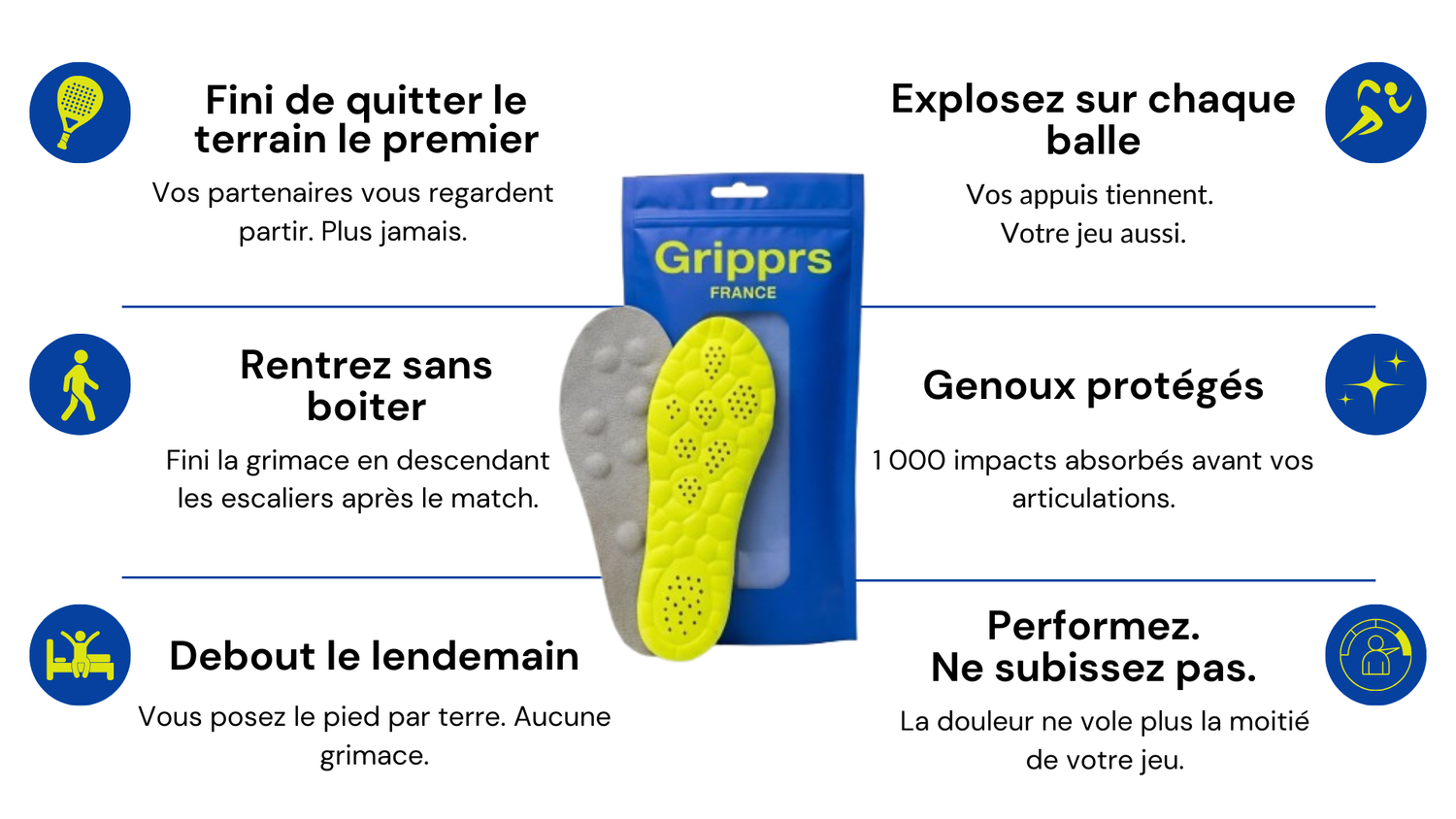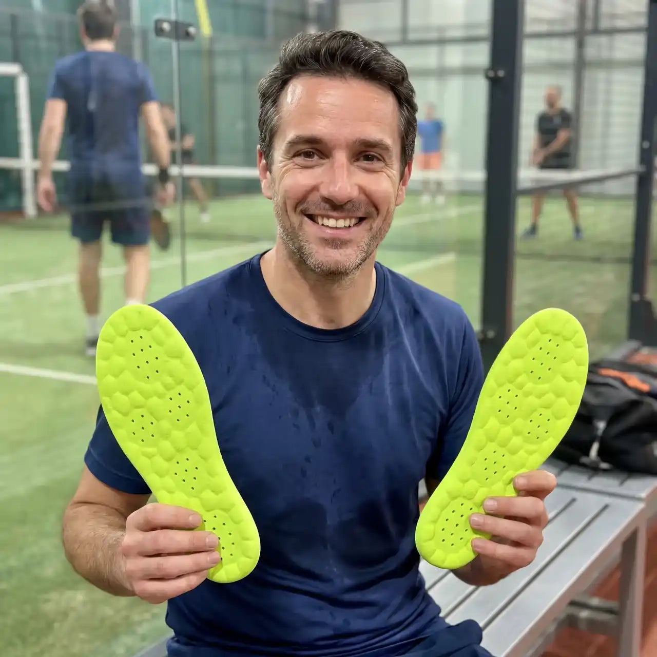 J'avais une tendinite qui revenait tous les 3 mois. Mon kiné me disait que c'était le sport qui était trop dur pour mes articulations. J'avais accepté l'idée de jouer de moins en moins souvent. En 2 semaines, j'ai retrouvé mon niveau. Je joue maintenant 3 fois par semaine. Les semelles ont fait ce que 3 ans de kiné n'avaient pas réussi.